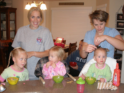 Do you remember the last time you had a sleep-over? Mine was just last week. Becca, Miguel, & I slept over at JoJo's house (or CyCy's house if you ask the girls). We had fun, fun, fun! The special occasion was Car's last night in Utah. She and Spener and Mom came over at 7 am to have breakfast with the kidlets and to say goodbye.