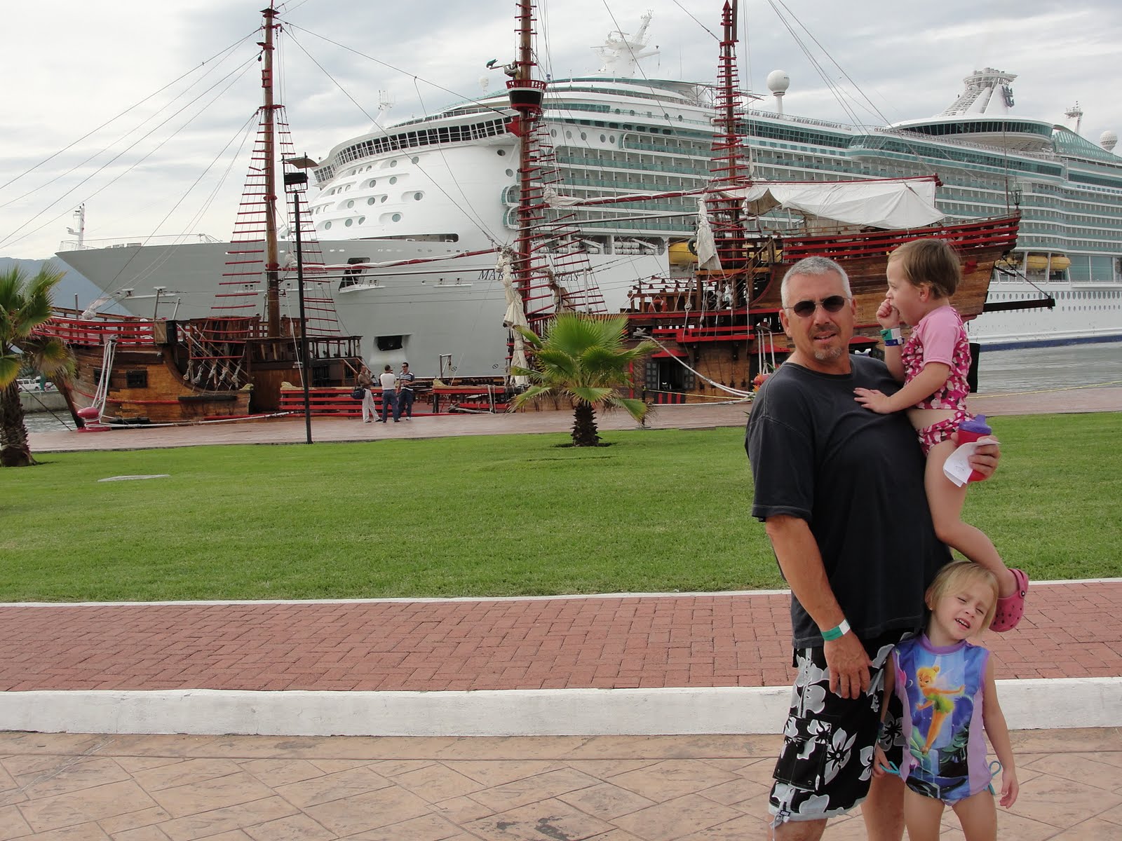 Lovey & the girls @ 8:30 am w/the Pirate ship and "the big boat" in the background