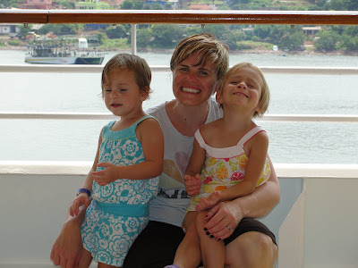 Becca got a bloody nose. Mary-Gail accused her of picking her nose (which is how Mary-Gail always gets her bloody noses) but Becca got a bloody nose from the change in temperature: leaving the air conditioned inside of the boat to the hot, humid, muggy outside temperature. Crazy right? I thought so too. Lovey said he would always get bloody noses as a child; I never did, but I sure know how to stop them - with a "Pappy Plug." My Dadda gets bloody noses all the time and he stops them with a plug of tissue. So that's what we did to Becca's bloody nose, and as soon as I told her it was a "Pappy Plug," she let me twist it on in.