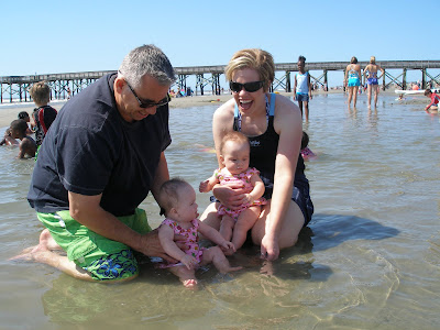 Avery & Calli left Jada with us and walked to the ocean for a quick toe-touch. Jada was sleeping soundly, just like a 3-week old baby should. Mary-Gail & Rebecca kept squinting with the bright sun and cool ocean breeze. Here is me & Lovey with the girls in one of the tidal pools. Let the girls explore these new sensations...